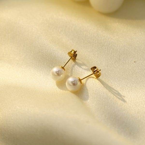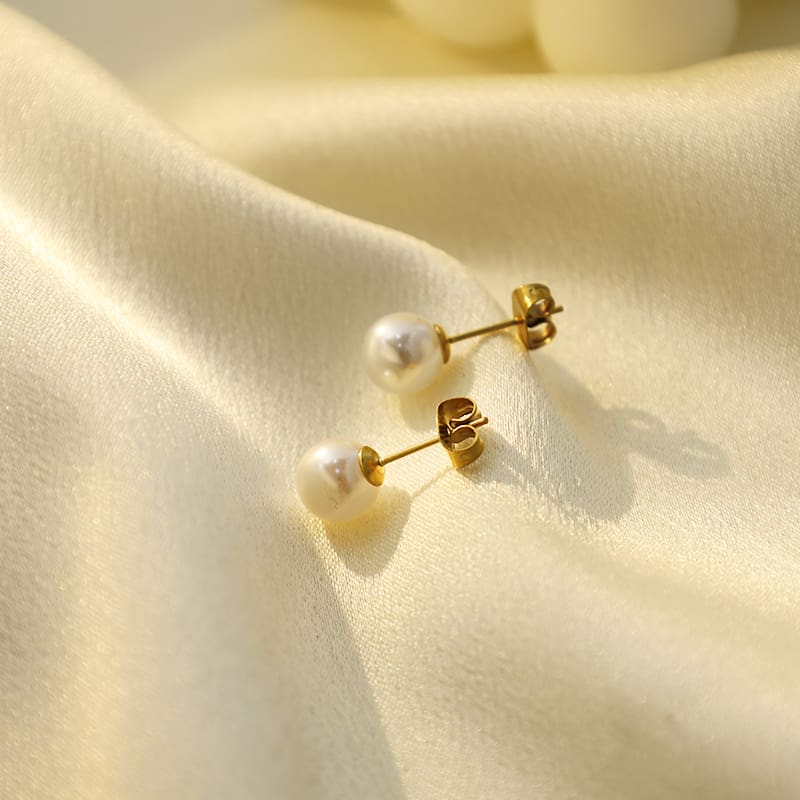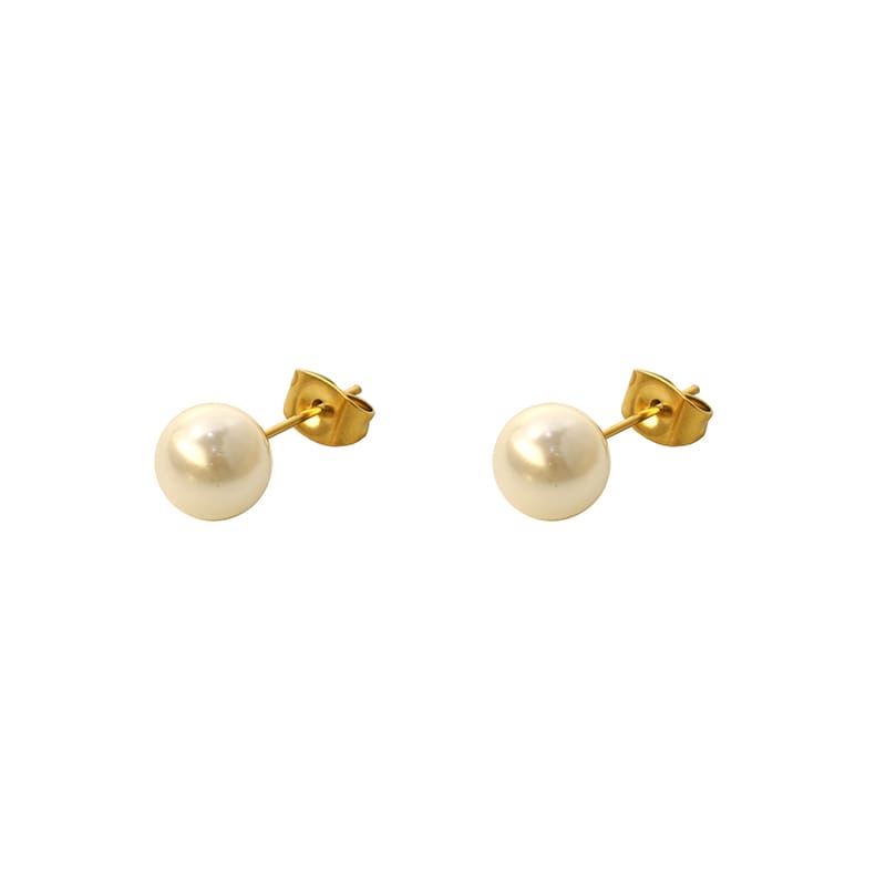 עגילים צמודים סטיינלס סטיל ציפוי זהב אמיתי 18K עם פנינה בקוטר כ- 8 מ"מ.