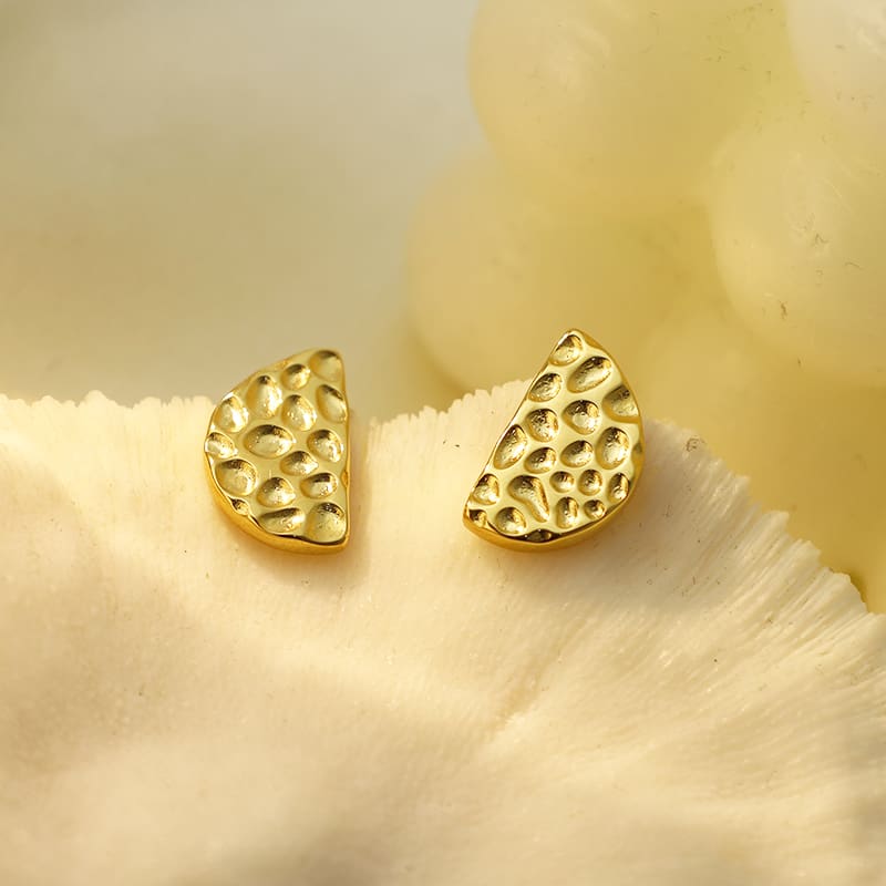 עגילי חצי עיגול עם טקסטורה ייחודית ובלתי שגרתית, נועזים במראה אך קלאסיים בביצוע. נותנים טוויסט מושלם לכל אאוטפיט, יומיומי או ערב, ומוסיפים טאצ’ של סטייל עם אופי.