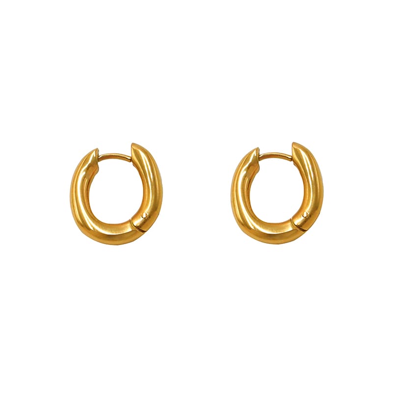 עגילי חישוק עבים בעיצוב אלגנטי ועכשווי, מעניקים נוכחות עדינה אך בולטת. מתאימים ללוק יומיומי עם חולצה מכופתרת או ג’קט, וגם לשילוב עם שמלת ערב חלקה ליצירת מראה שלם ומדויק. עשויים סטיינלס סטיל בציפוי זהב 18K בטכנולוגיית PVD לעמידות גבוהה וברק יוקרתי.